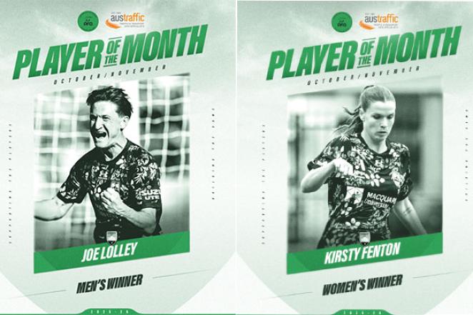 Congratulations to Sydney FC duo Joe Lolley and Kirsty Fenton, who have been voted by their peers as the October/November winners of the Austraffic PFA Players of the Month.