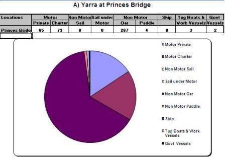 The types of vessels surveyed included Dragon and rowing boats,  canoes, sailing boats and motorised craft (private and government owned).  Austraffic also recorded the number of rowers and the size of the vessels.